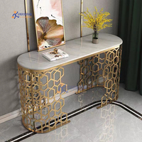 Lüks konsol masa toptan oturma odası zarif paslanmaz çelik altın taban mermer masa konsol masa