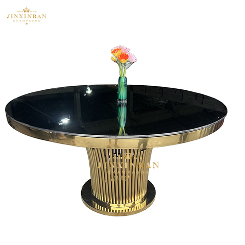 Mesa moderna de lujo para eventos Mesa redonda de acero inoxidable con tapa de cristal para bodas para hoteles