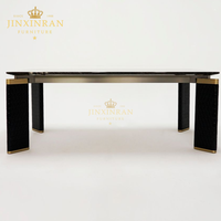 Modern Minimalist mermer yemek masası lüks siyah altın paslanmaz çelik çerçeve dikdörtgen yemek masası